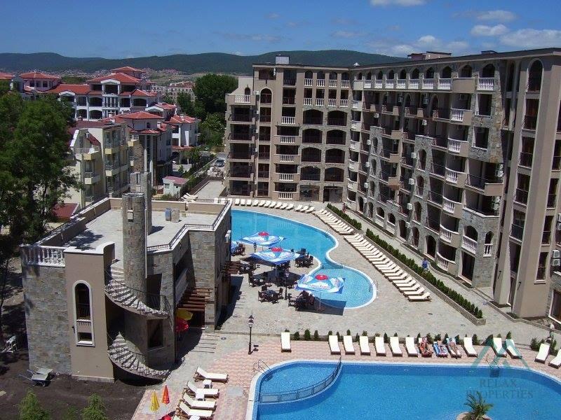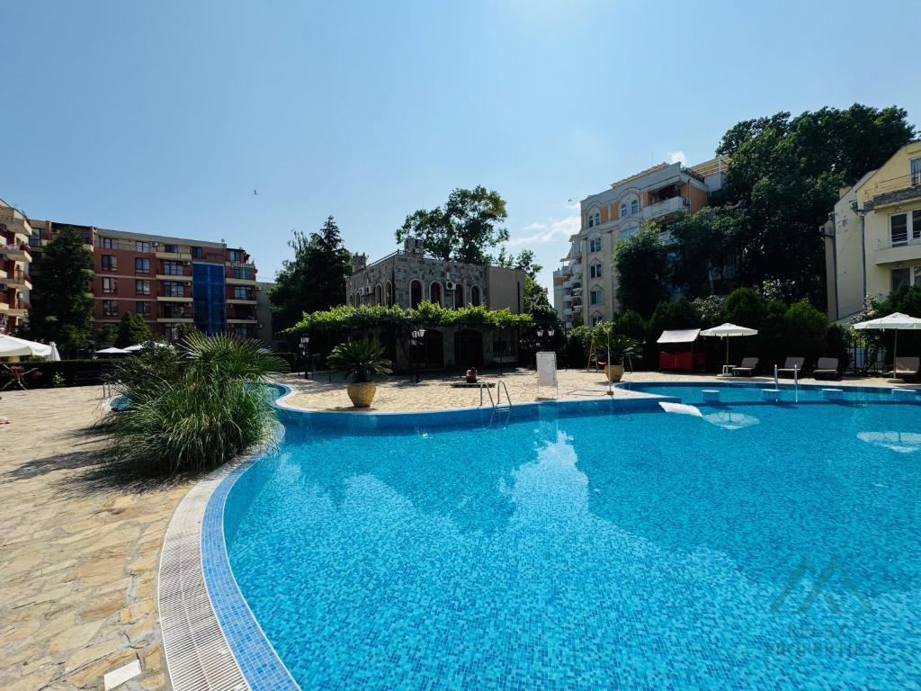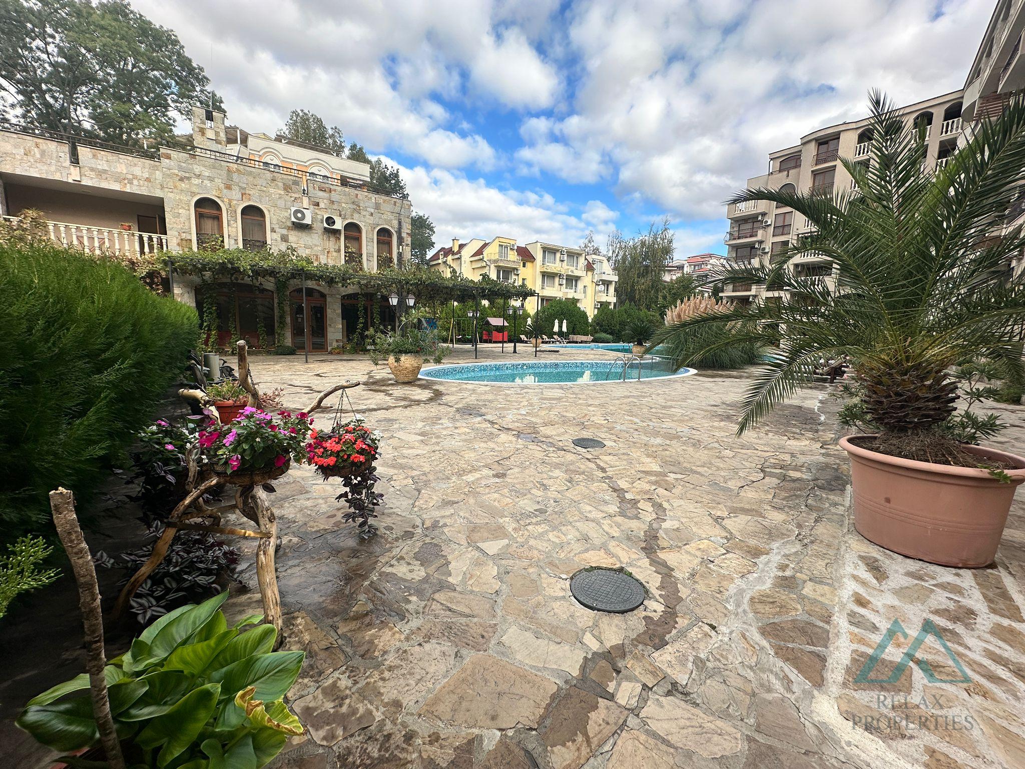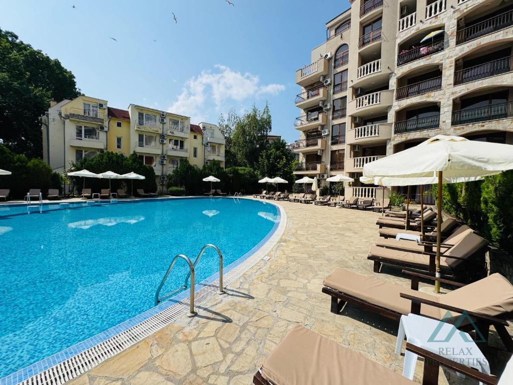 About the Kalia complex The Kalia complex is located in a peaceful and quiet part of Sunny Beach, just an 8-minute walk from the center and about 400 meters from the sea. All amenities are nearby – shops, cafes, restaurants, supermarkets, and currency exchange offices. One of the most famous water parks, Action, is only 200 meters away. Complex amenities: large outdoor pool with children’s section relaxation areas with sun loungers and parasols children’s playground restaurant on site