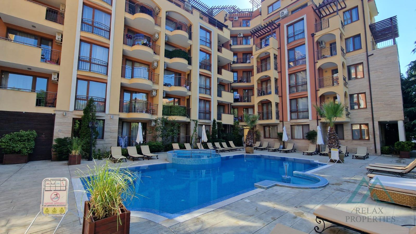 We offer for sale a spacious 2-room apartment in the popular seaside resort of Sunny Beach, in the modern year-round 4* complex Harmony Suites 1. This complex is part of the well-known Harmony Suites family and is located only 700 m from the sea (10 minutes on foot).