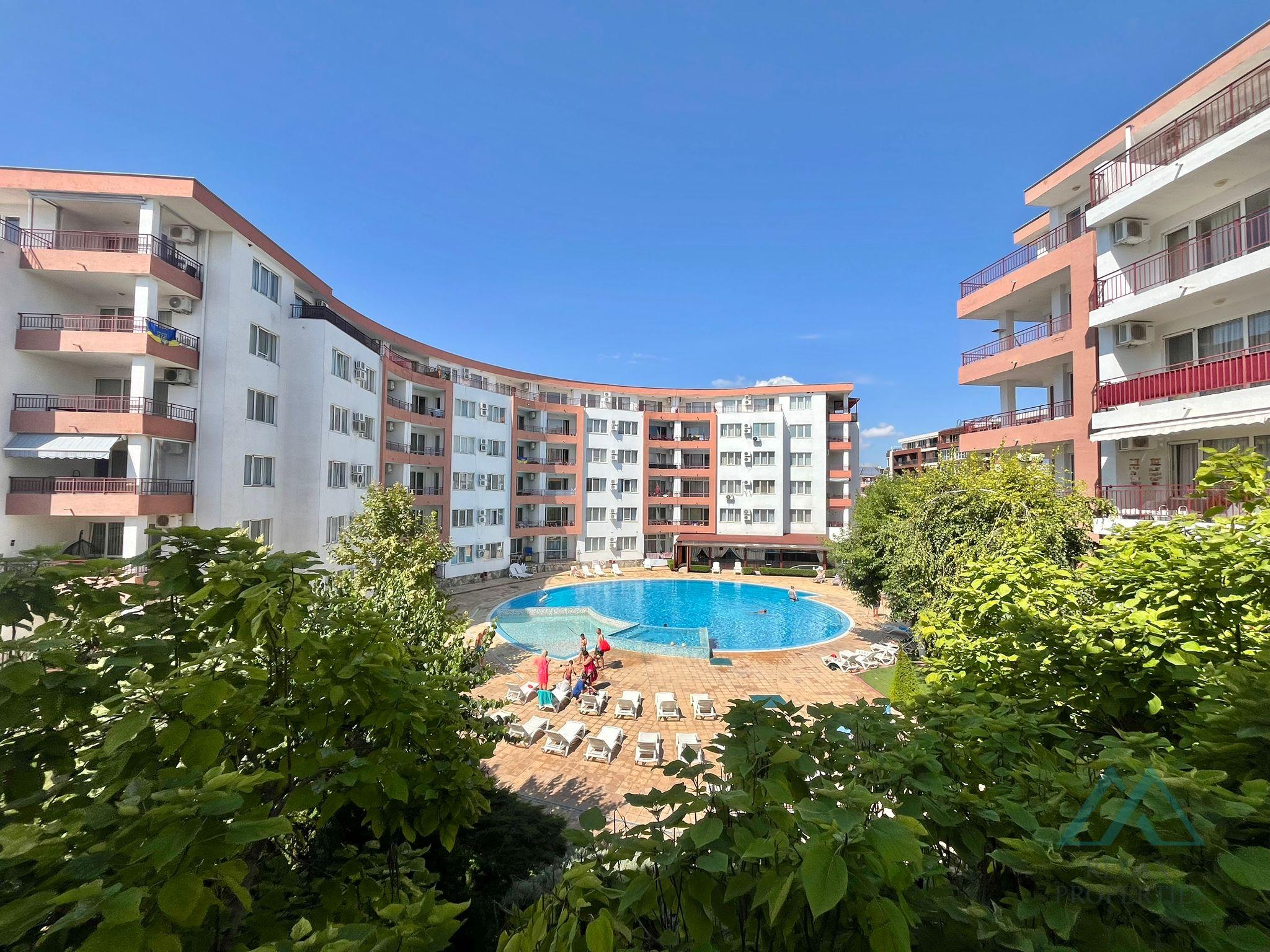 The owners pay an annual maintenance and management fee of 14,50 EUR / 28,36 BGN including VAT 20% per m² of the total area of the apartment. This fee includes: swimming pools, cleaning, gardens, secure parking, maintenance of common areas, complex management and security services.