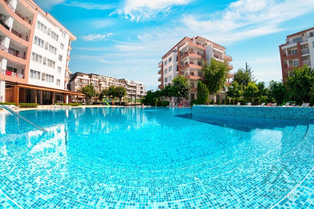 Riviera Fort Beach is located directly on the beach in the village of Ravda. The beautiful first line complex with stunning sea views is ideal for a family holiday. There is a swimming pool, free sun loungers, children’s pool with waterslide, tennis court/football court, children’s playground, free parking and a poolside garden restaurant with panoramic sea views. The business and entertainment district of Ravda is just a few minutes’ walk away, while the UNESCO monument – the old town of Nessebar – is nearby and definitely worth a visit.