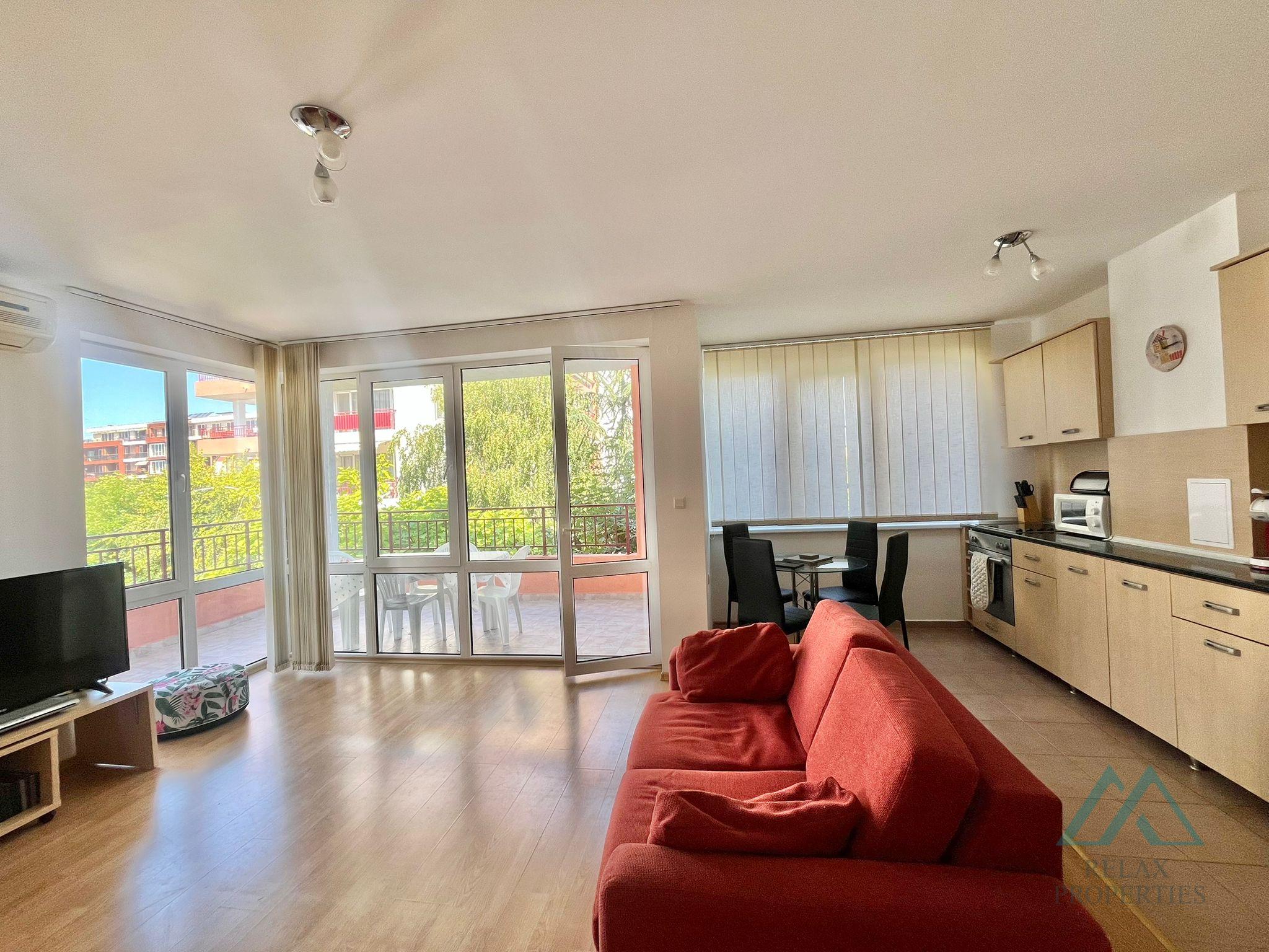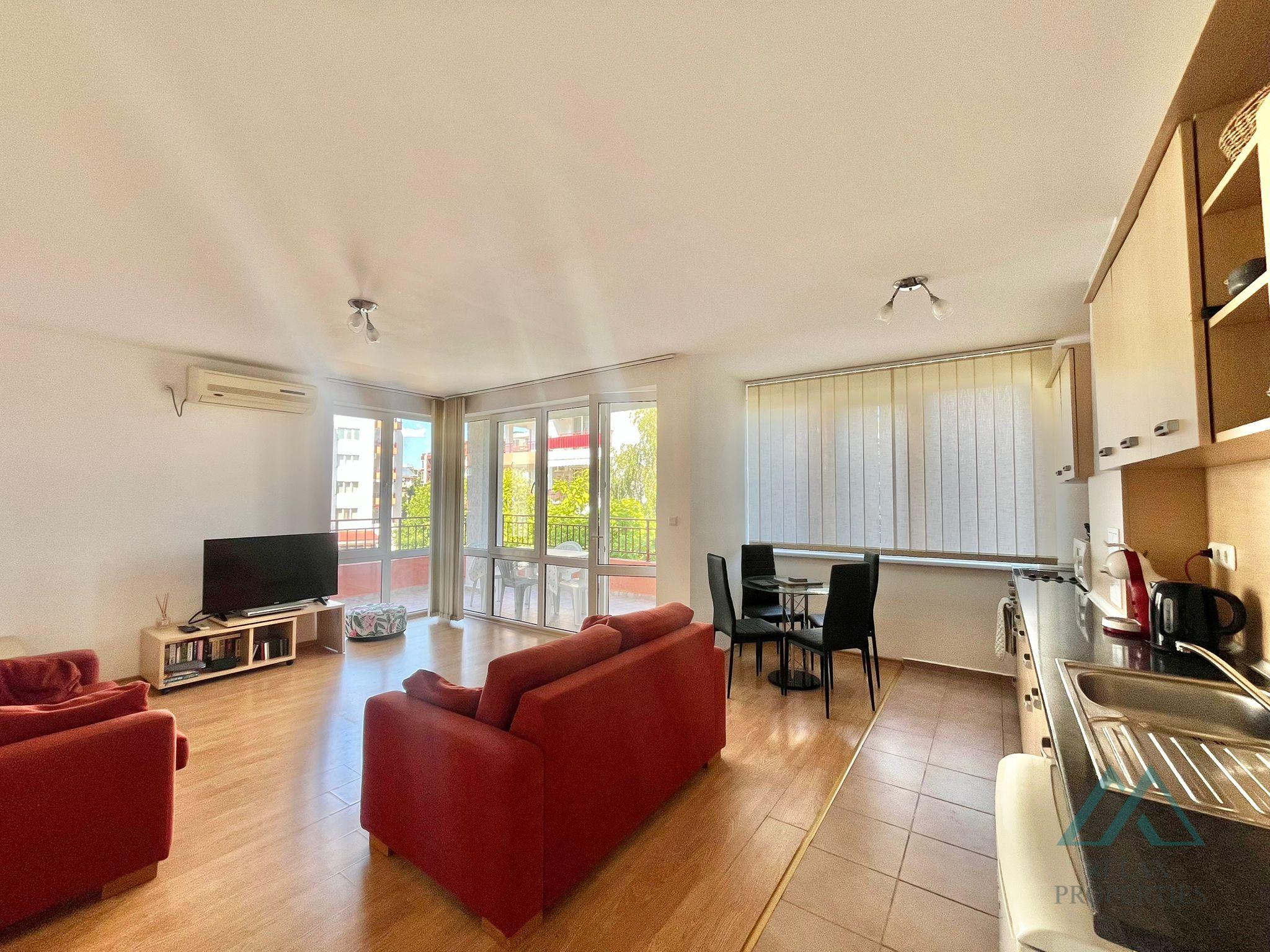 We offer for sale this spacious 1-bedroom apartment with an exclusive location – right on the first line of the sea in the quiet seaside village of Ravda.