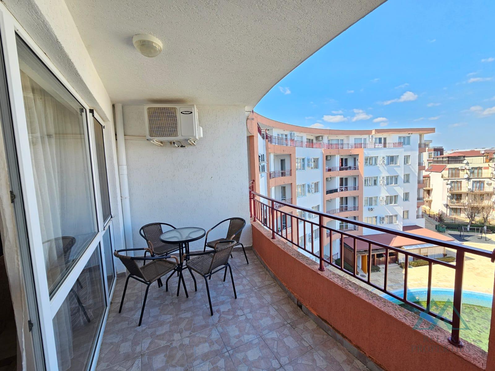 For sale we offer a 1-bedroom apartment with sea view of 78 m², located on the first line by the sea in the prestigious Riviera Fort complex in the quiet village of Ravda, Bulgaria.