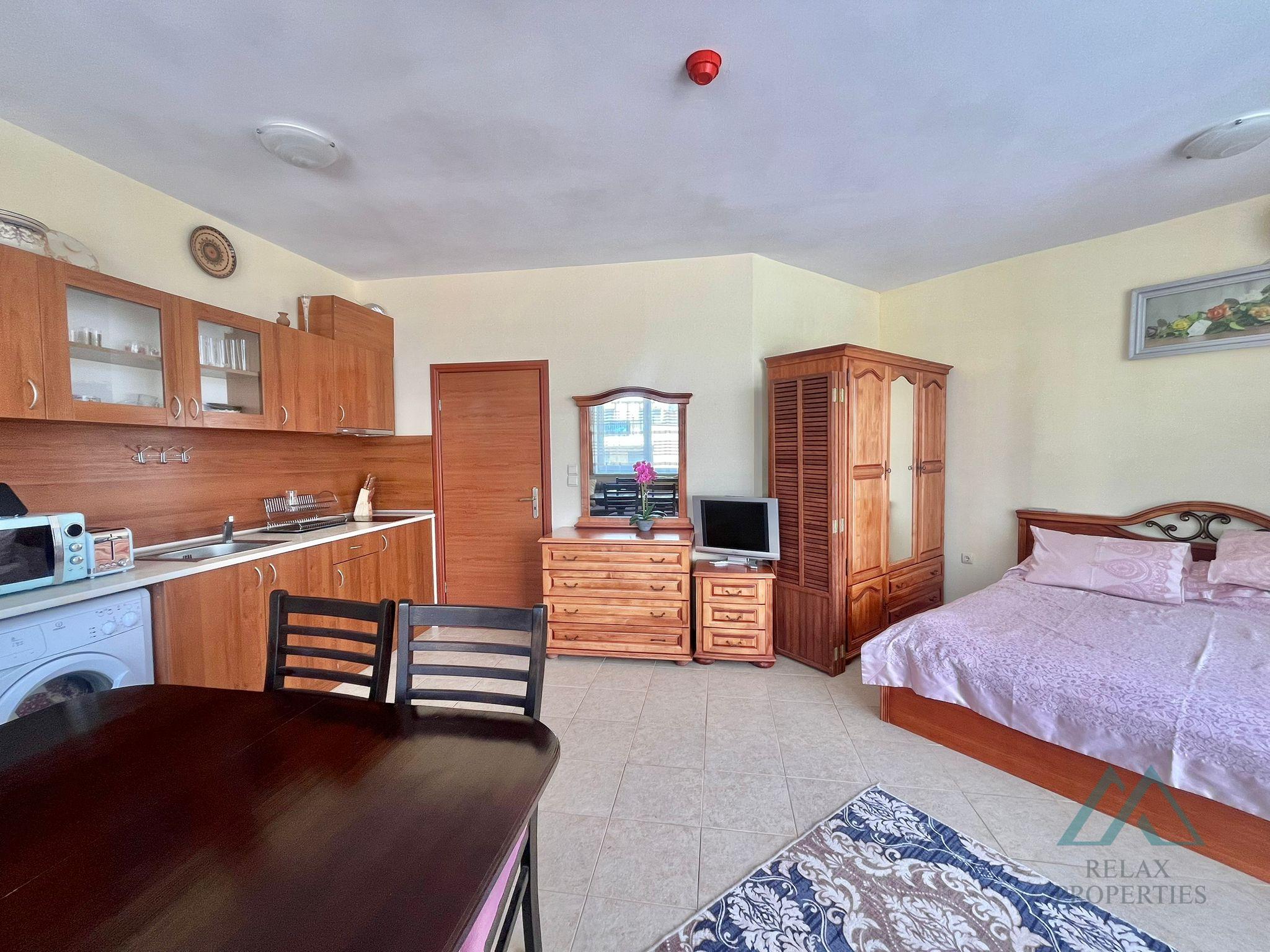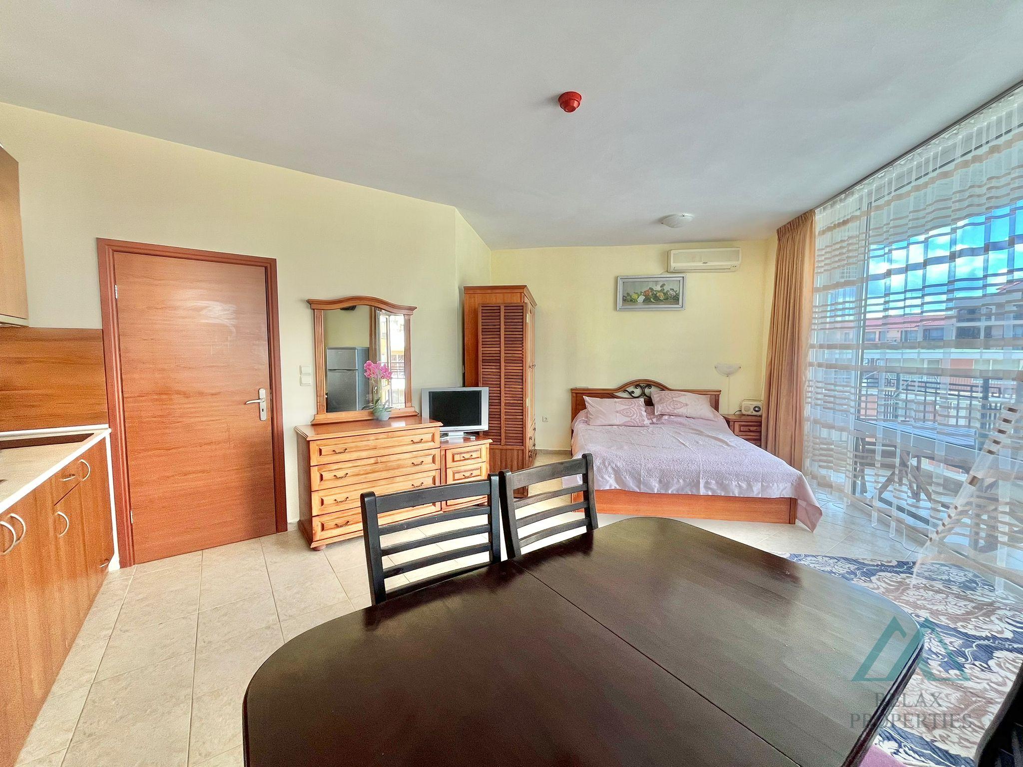 For sale we offer a spacious studio of 52 m², located in the 4 star aparthotel complex Karolina in the southern part of the popular resort of Sunny Beach, just a few steps away from the sandy beach and the famous Cacao Beach area. The Karolina complex is located on the first line by the sea, close to the town of Nessebar.