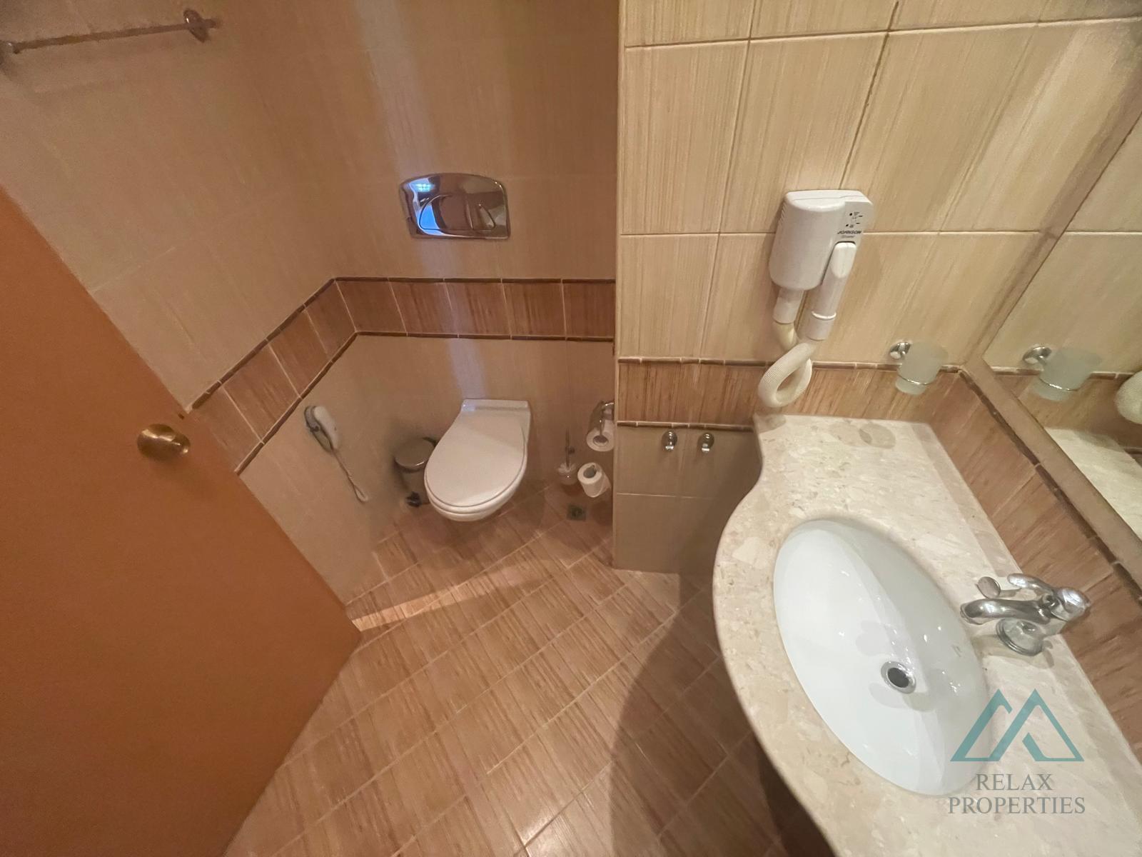 bathroom with toilet Resort fees and services The annual management and maintenance fee is €12/m², which includes care of the entire complex (swimming pools, greenery, reception, security service, hotel maintenance, etc.). Apartment owners and their families can use all resort facilities free of charge, including sun loungers, parasols, fitness center, and entertainment programs. Meals can also be ordered – breakfast or all-inclusive.