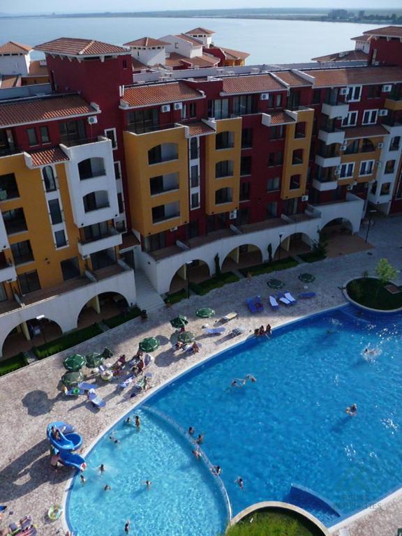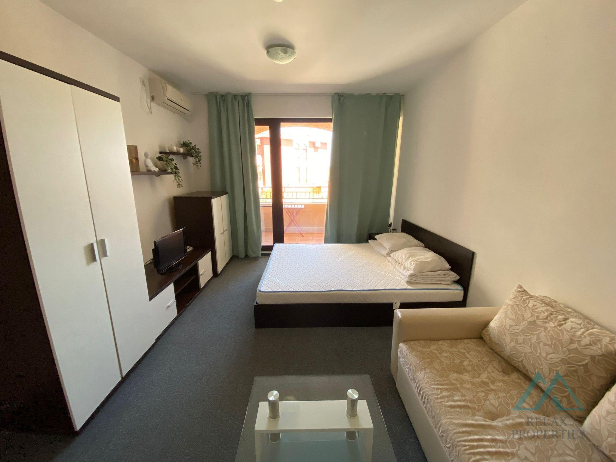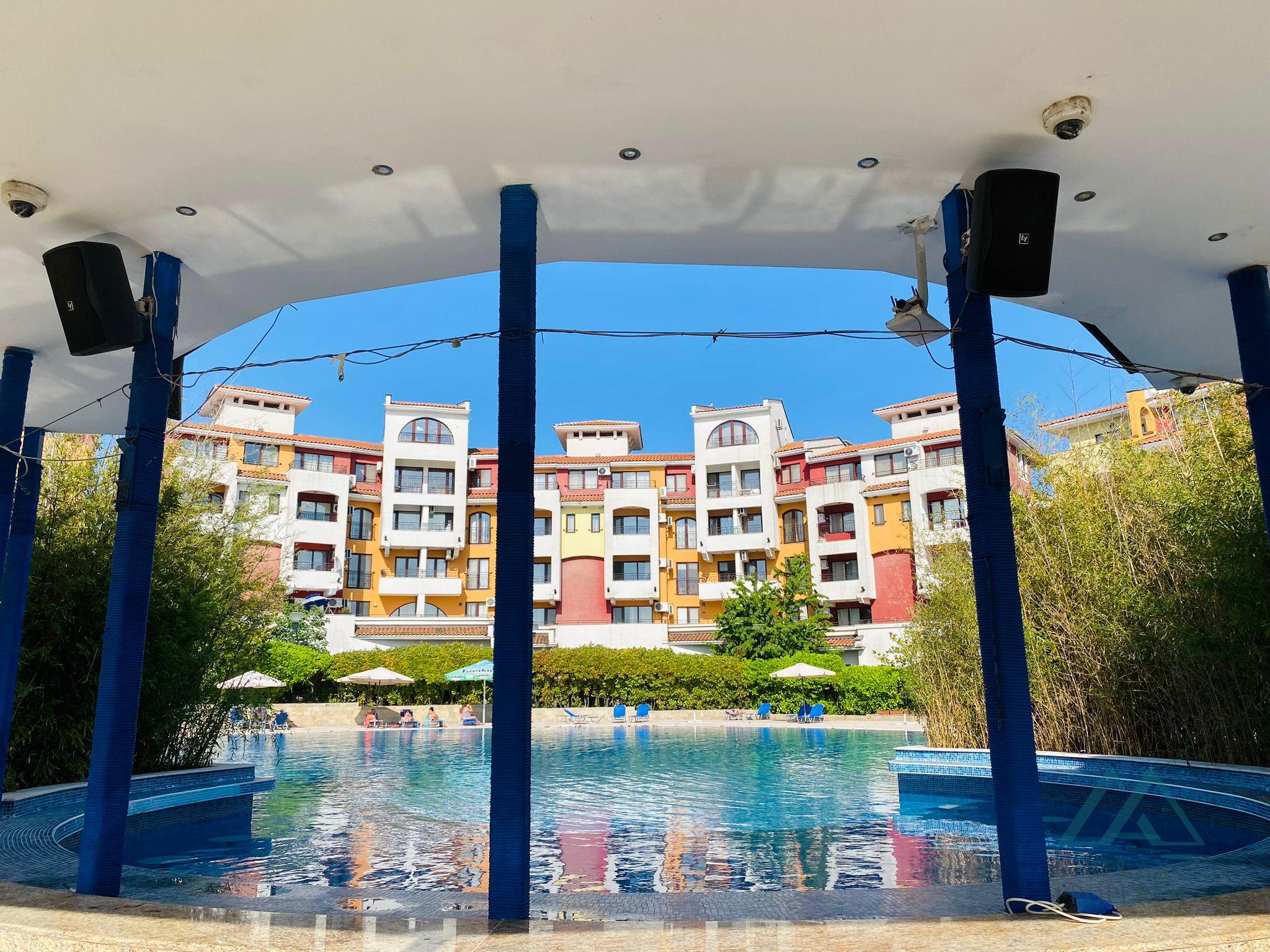 The apartment is sold fully furnished and equipped, ready for immediate occupancy or rental, exactly as you can see in the photos. The property is maintained in very good condition. Management and maintenance fee: 12 EUR/m² payable once a year. The apartment has its own water and electricity meters (low fees). About the Marina Cape complex Marina Cape Resort is a well-known and fully functioning complex located on the seafront in Aheloy Bay, right next to the beach and the yacht harbor. You can moor your boat or jet ski here. The complex offers extensive facilities for recreation and permanent living: a wellness center with saunas, jacuzzi, and professional masseurs, a fully equipped fitness center, 2 swimming pools with a children’s section,