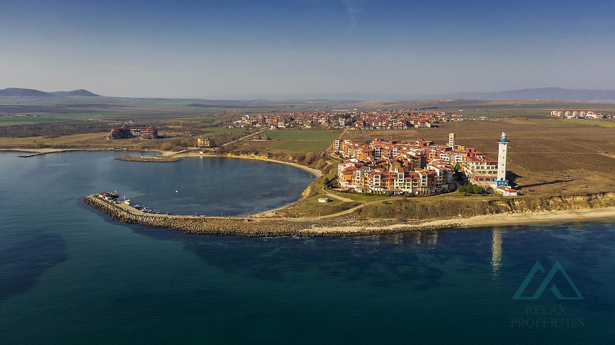 The Marina Cape complex is the ideal place for a peaceful holiday by the sea or as a profitable investment with the possibility of seasonal rental. Location – Aheloy The resort of Aheloy is located in the central part of the Bulgarian Black Sea coast, just: 19 km from Burgas International Airport,