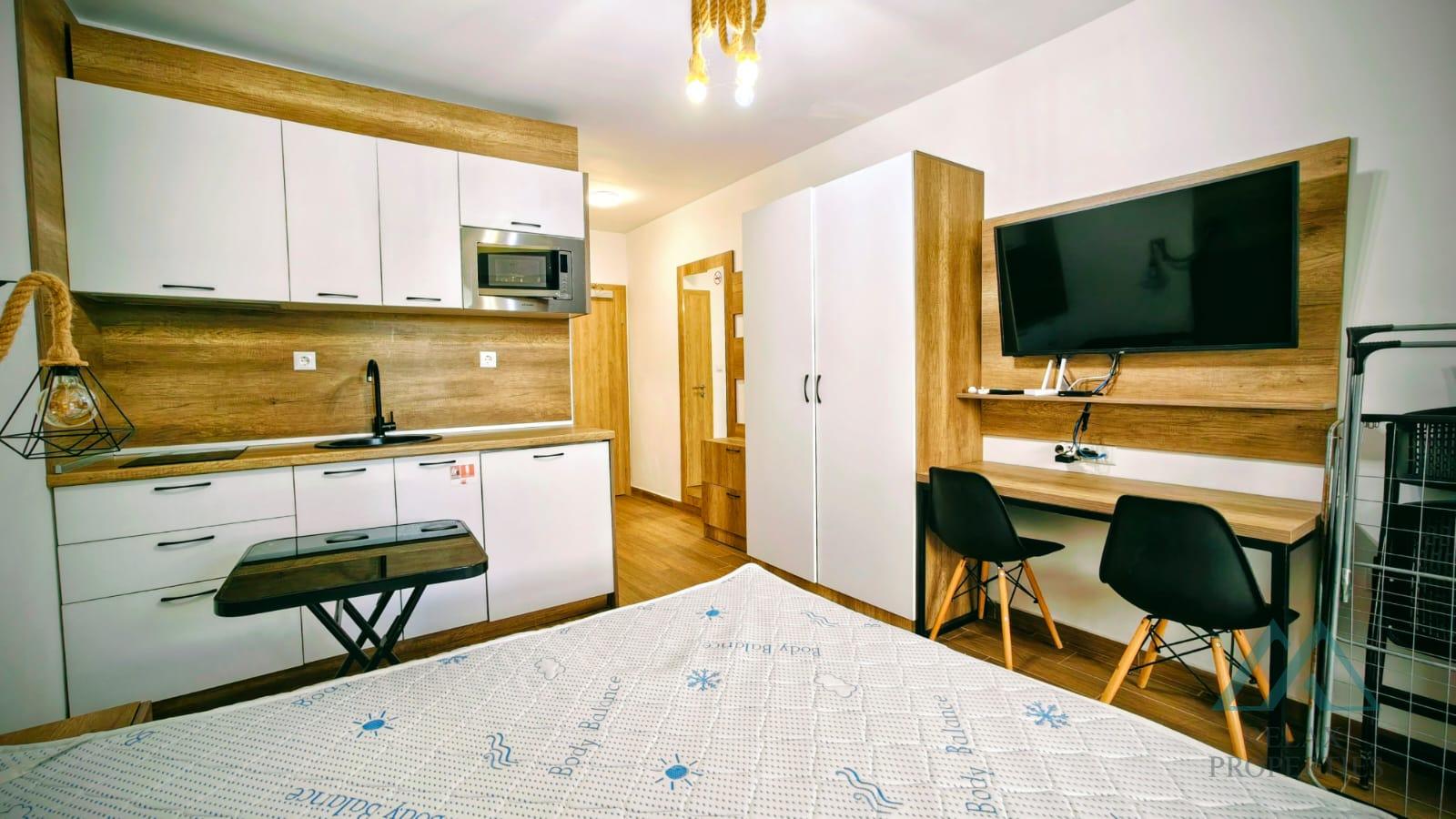 Certified real estate agent Relax Properties offers you for sale a modern studio apartment with direct access to a private terrace, located on the ground floor in the new Cascadas 20 building, built only recently in 2020. The apartment is located in the prestigious Cascadas Family Resort complex in Sunny Beach, Bulgaria.