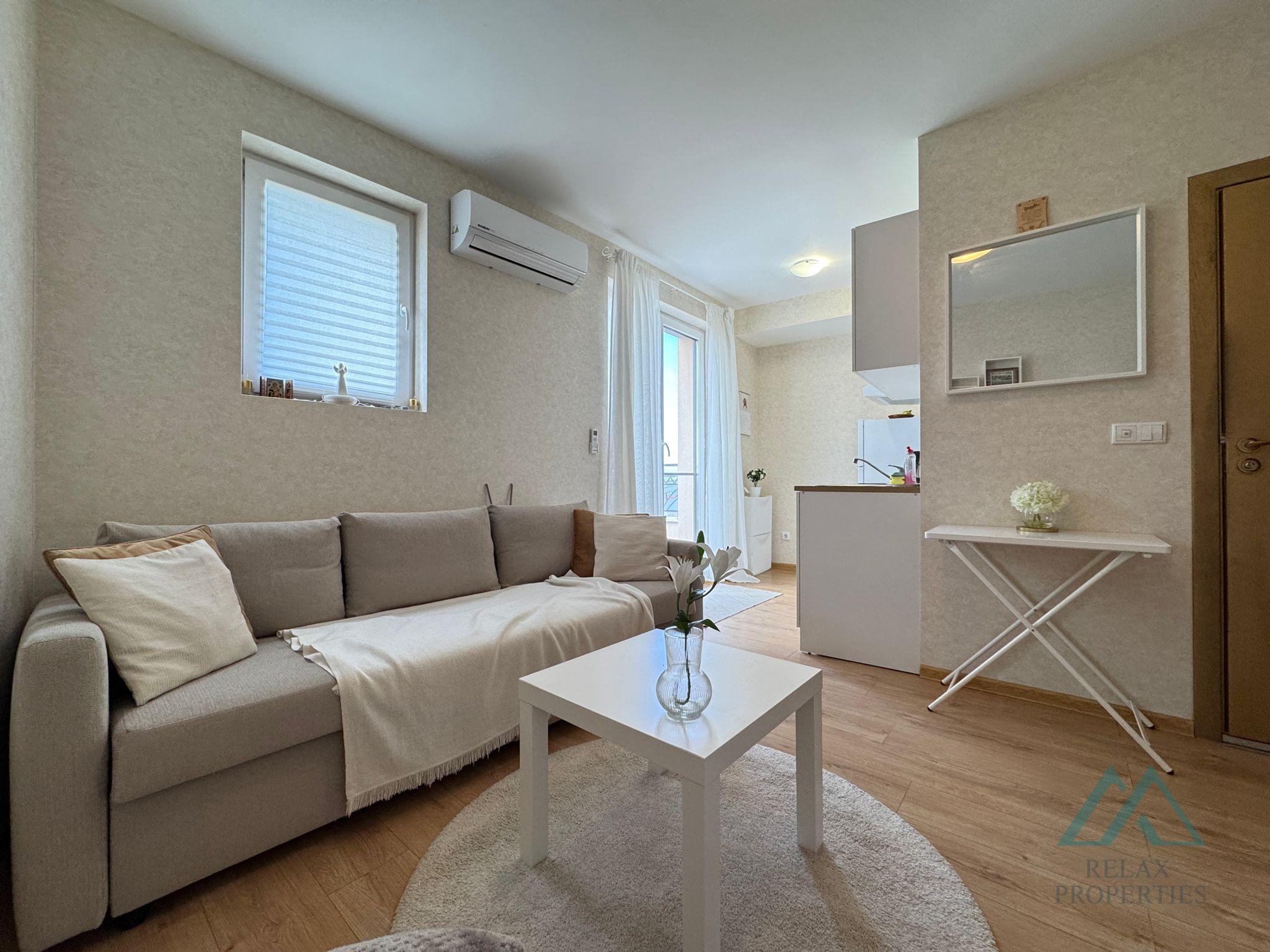 Reference number: B_3621 Certified real estate agency Relax Properties offers for sale a cozy, fully furnished studio with an area of 30.6 m², located in the newly built Aphrodite Park complex in the popular resort of Sunny Beach, Bulgaria.