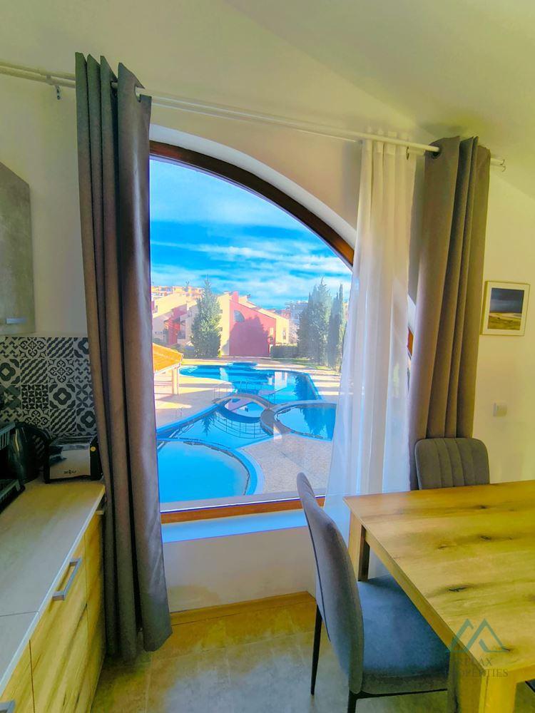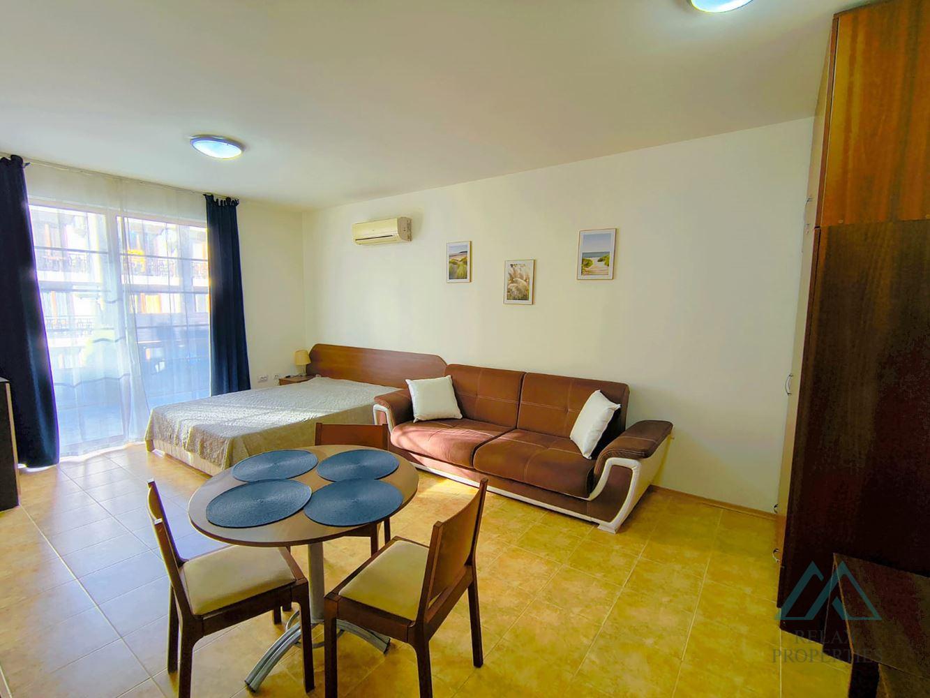 Reference number: B_3649 Certified real estate agency Relax Properties offers for sale a spacious studio with a terrace in the Sea Lighthouse complex in the popular resort of Sveti Vlas, just 200 m from the sea. The apartment has a total area of 48 m² and is located on the 2nd floor. The layout consists of: