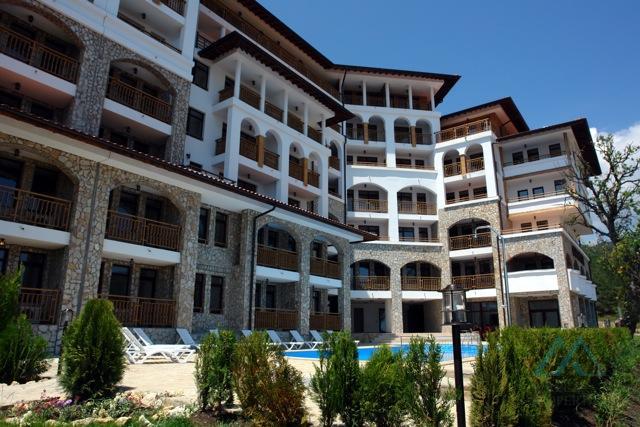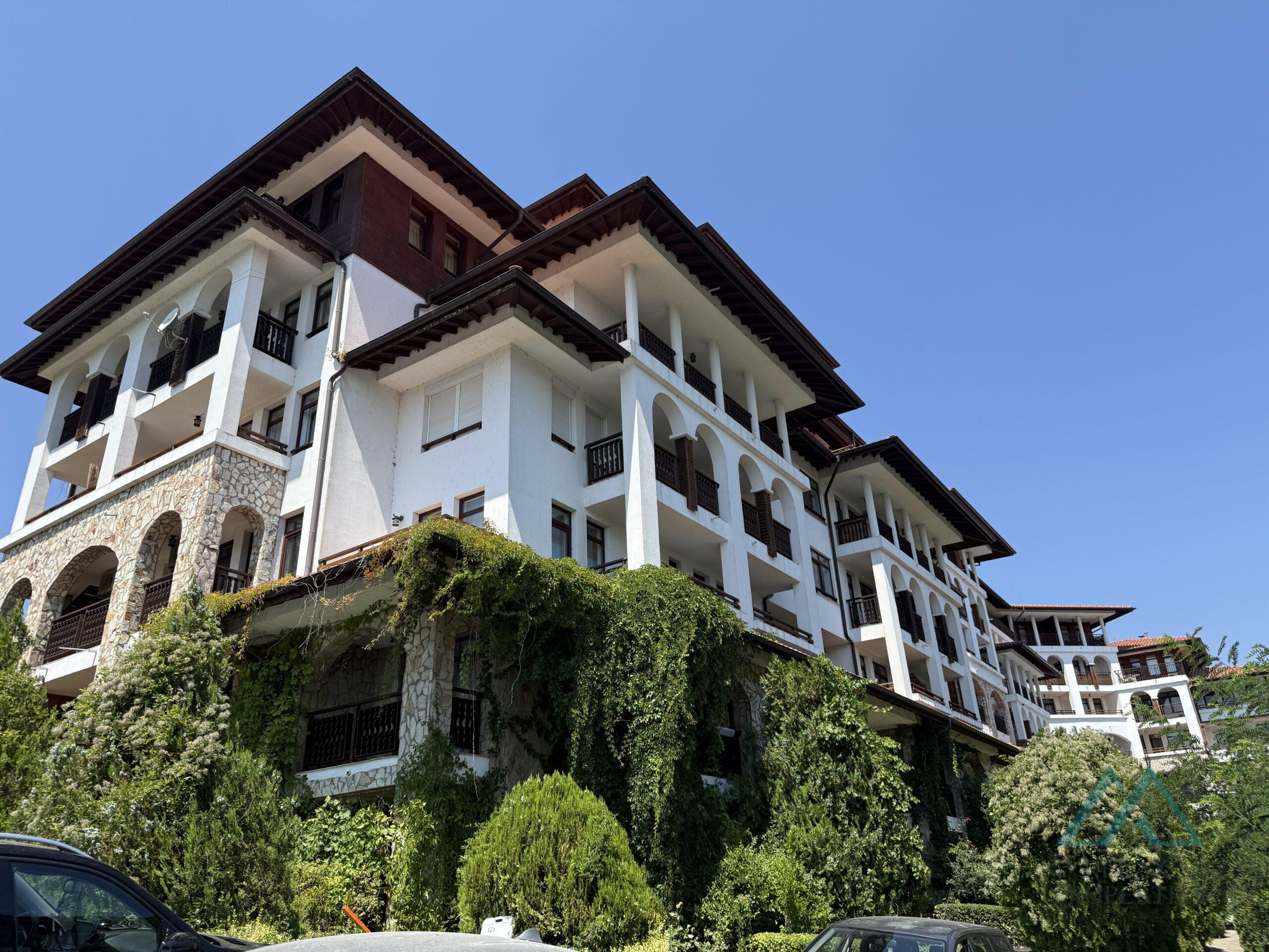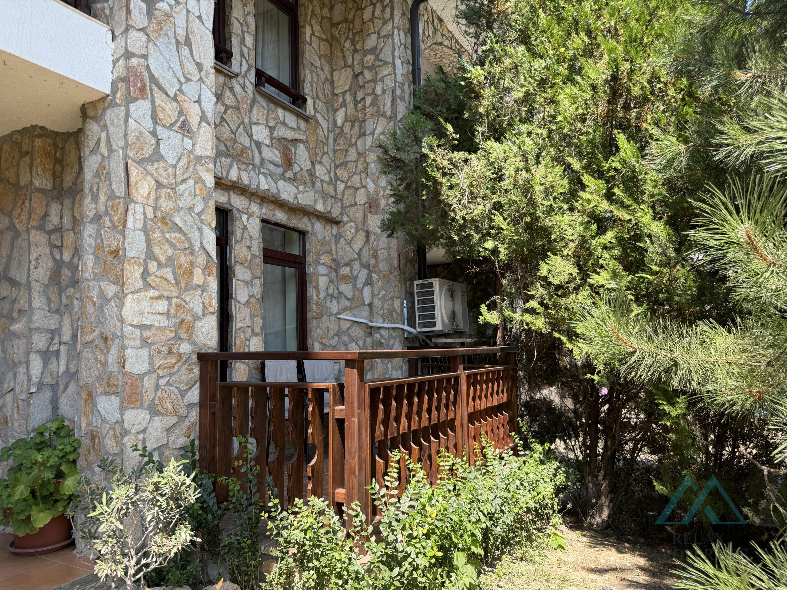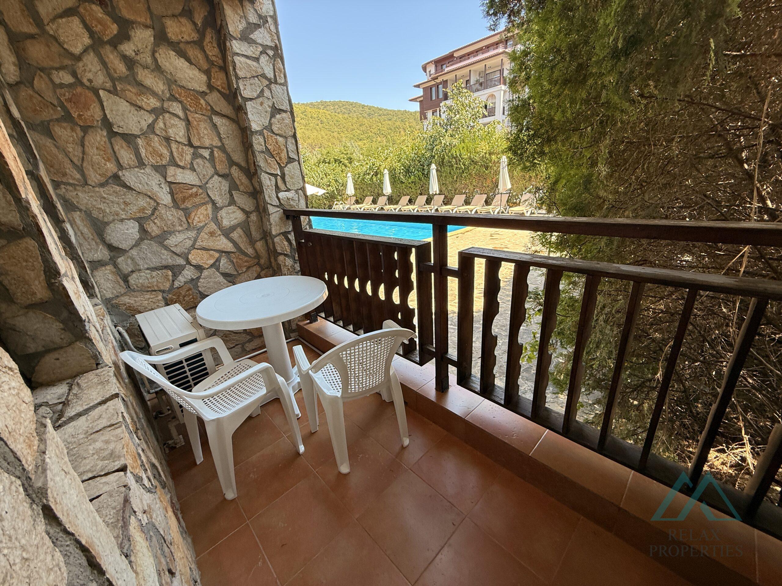 We offer for sale a spacious studio apartment in Etara 3 complex, located just 300 meters from the beautiful beach in Sveti Vlas. The apartment has an area of 38,37 m² and is situated on the 1st floor elevated ground floor. The layout consists of an entrance hall, living room with kitchenette, sleeping area, bathroom with toilet and a terrace overlooking the swimming pool in the complex. The surroundings of the complex are breathtaking close to the forest and greenery, the sea and beautiful beaches.