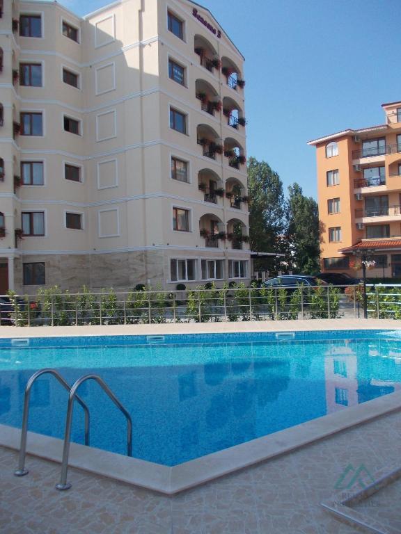 Location The complex is located in a quiet and well-maintained part of Sunny Beach, only about 600 m from the sea and the beach. The surrounding area has a well-developed infrastructure – supermarkets, shops, a pharmacy, a bus stop, restaurants, bars, an amusement park, and many other services and attractions.