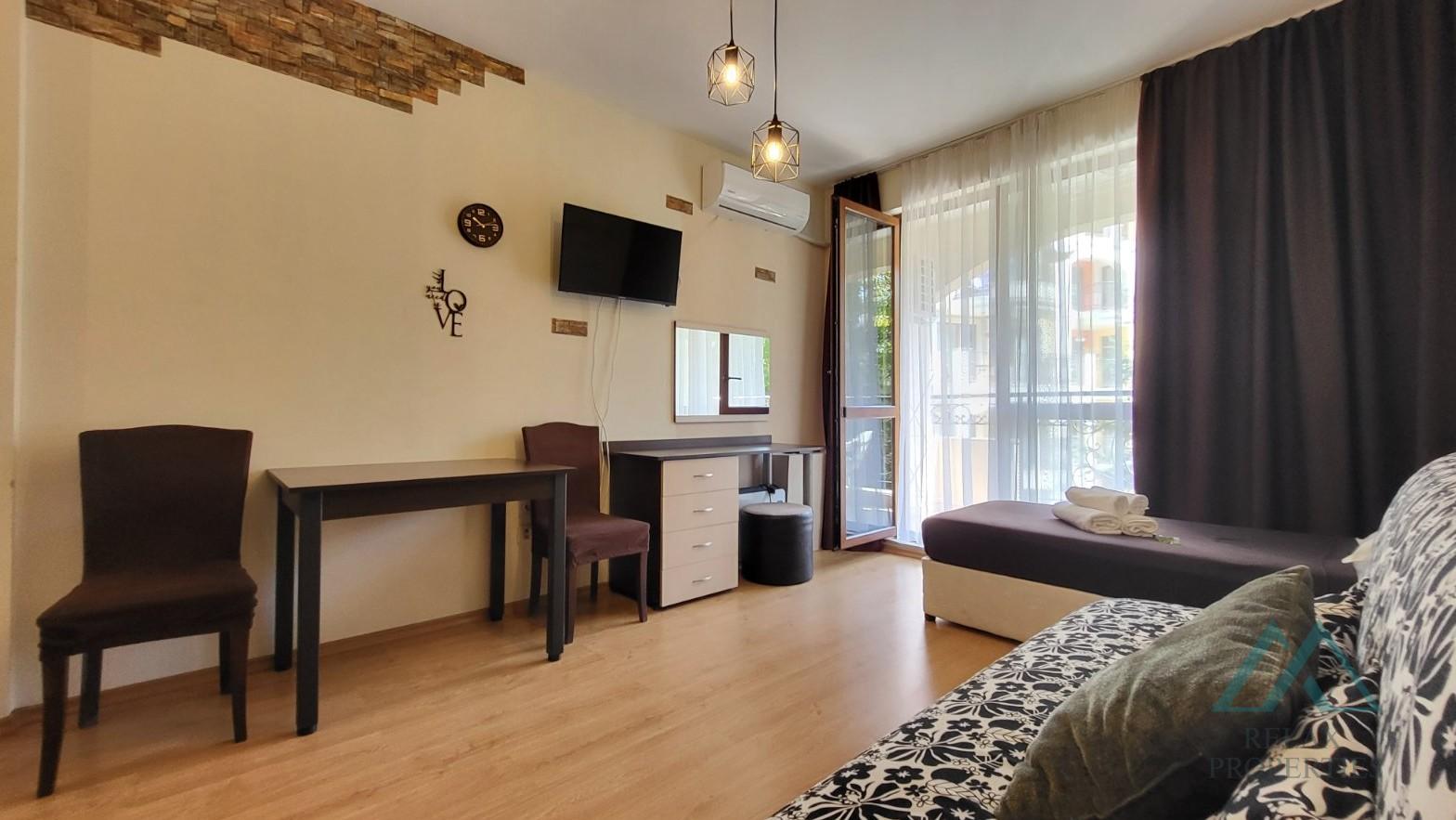 Reference number: B_3510 We offer for sale a beautifully furnished and well-maintained studio apartment in the popular year-round complex Seasons 3, 600 m from the sea in the resort of Sunny Beach, Bulgaria.