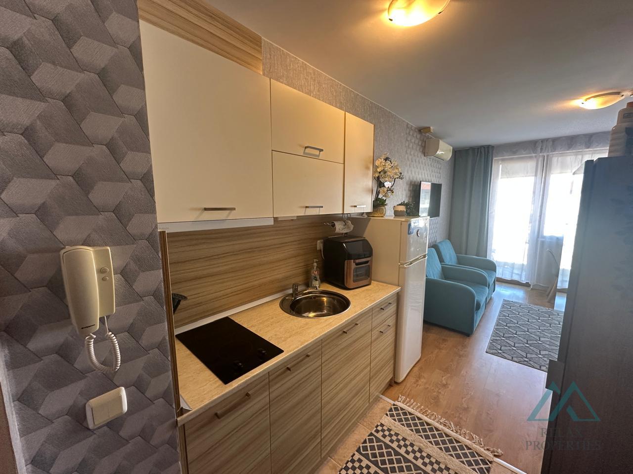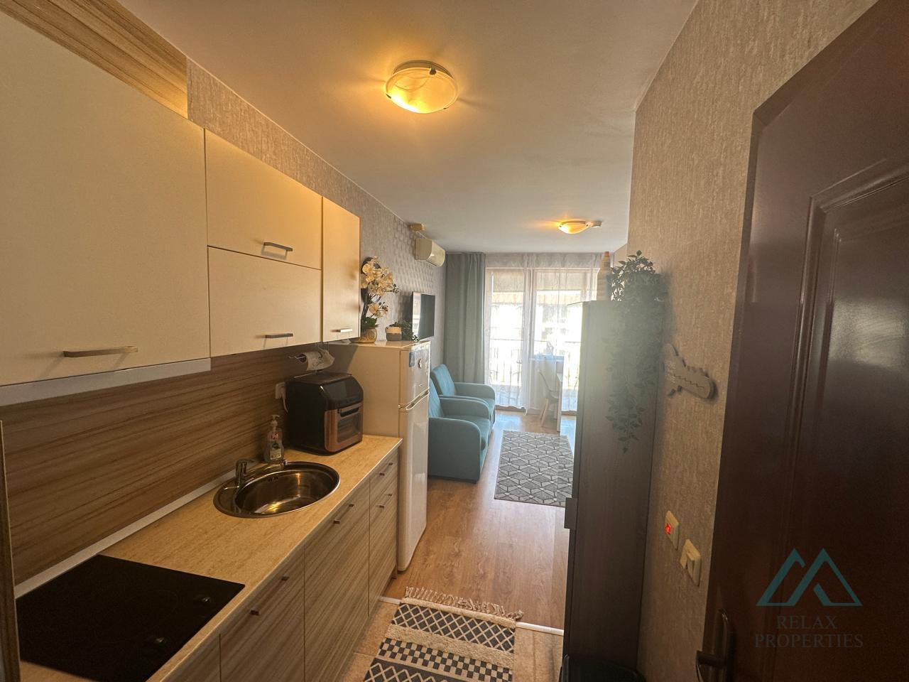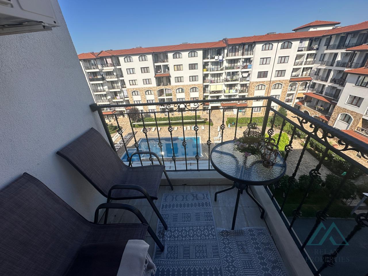 Certified real estate agent Relax Properties offers you for sale a top floor studio overlooking the swimming pool in the year-round popular complex Apollon 8, located in Ravda, Bulgaria.